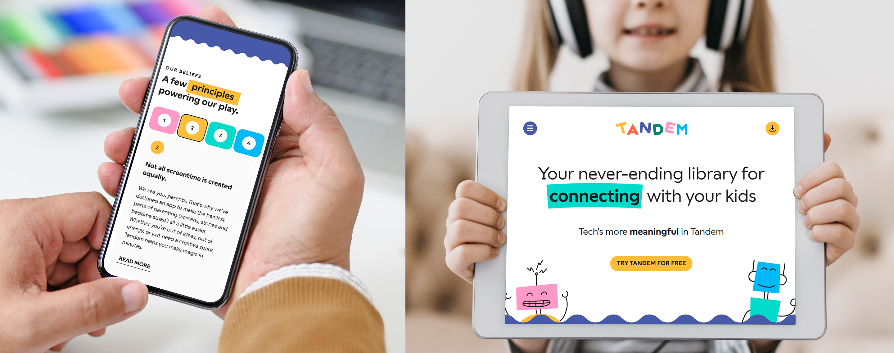 Tandem is a mission-driven technology company rethinking how young children interact with digital tools. For this project, we redesigned the website to better communicate Tandem’s research-led approach and the depth of expertise behind the platform. The new experience brings clarity to their vision, highlighting the team of academics, doctors, and psychologists working to create technology that supports healthy early development. The result is a thoughtful, approachable website that reflects Tandem’s commitment to building safer, more meaningful tech for the next generation.